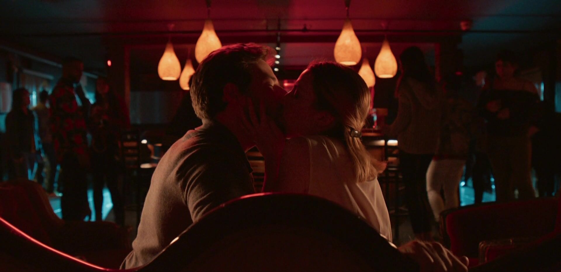 TV series You sex scenes of blonde girl Elizabeth Lail kissing and being humped