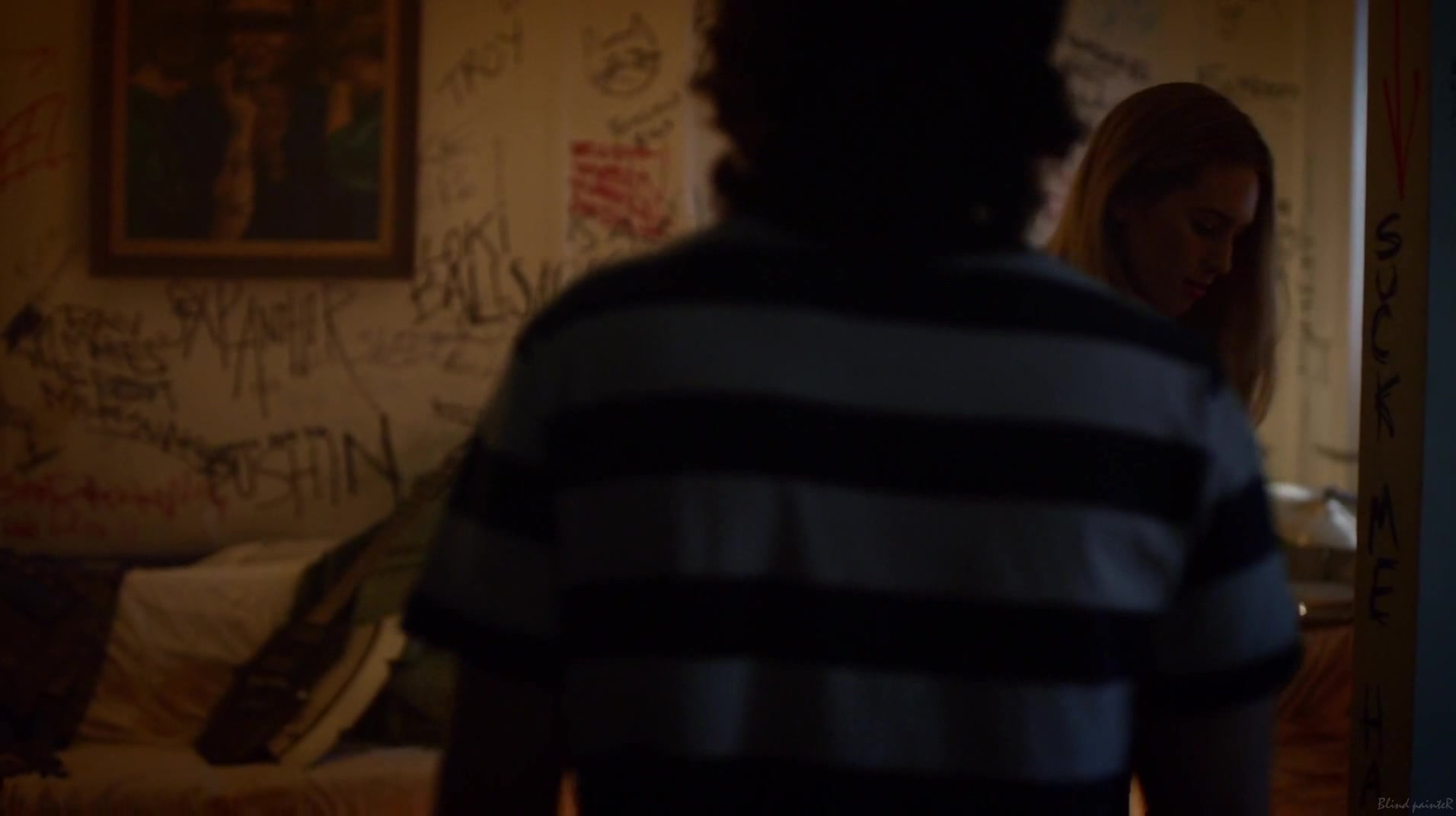 TV series You sex scenes of blonde girl Elizabeth Lail kissing and being humped