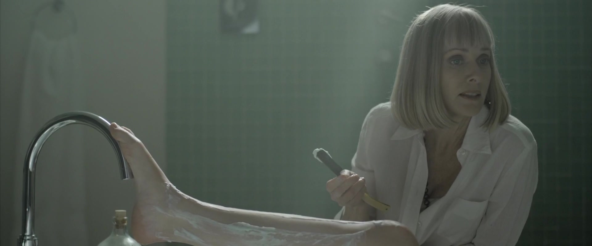 Shaving legs and a nude scene in the bathroom with topless celebrity Sara Malakul of the movie "Sun Choke"