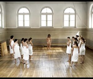 Naked on stage? Group nude Girls and one man