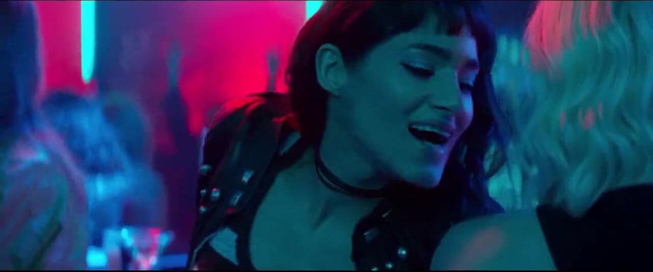 Sex scene from Atomic Blonde (2017) with participation of hot-to-trot African actress Sofia Boutella and mature Charlize Theron. Sofia and Charlize meet in nightclub and move to bed to end moment with orgasm.