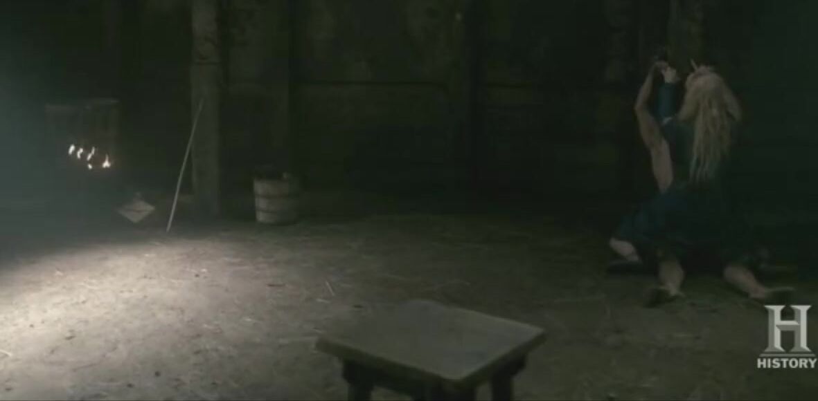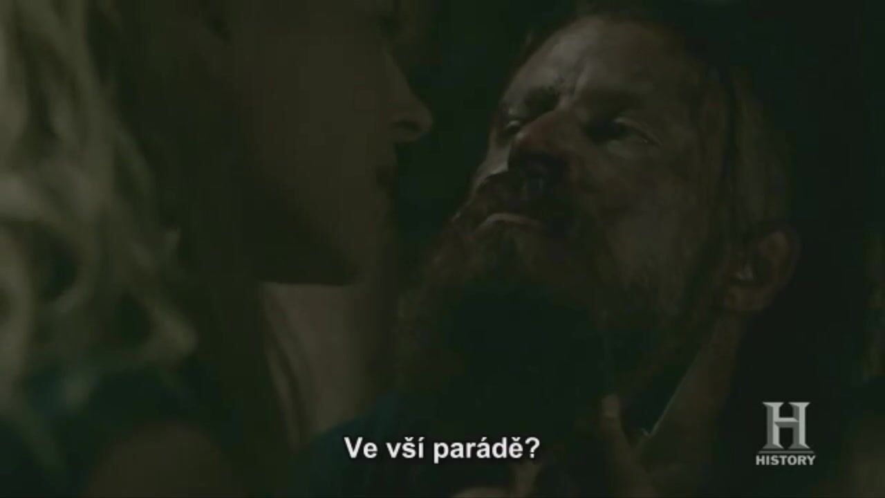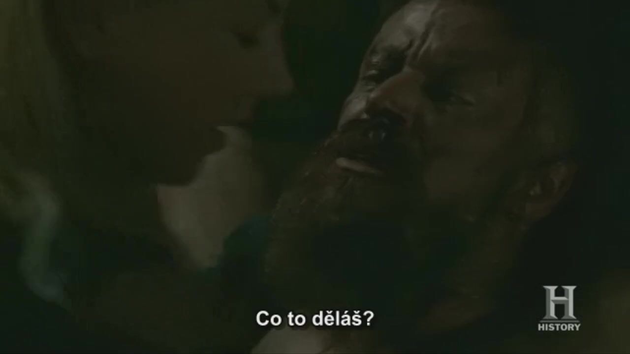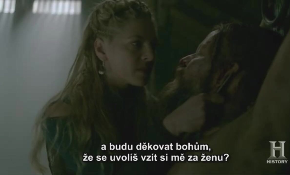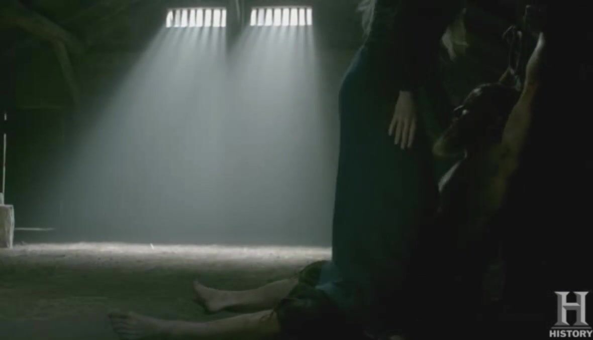 Mature actress Katheryn Winnick with the knife is going to show Harald who is the boss here. The slave is chained up, so he can't resist. Katheryn takes advantage of his boner and rides it to orgasm.
