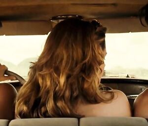 Kristen Stewart excites co-stars and gives them sexual pleasure face-to-face or even having a threesome in On The Road. She exposes the skinny body and receives two penises in her narrow slit.