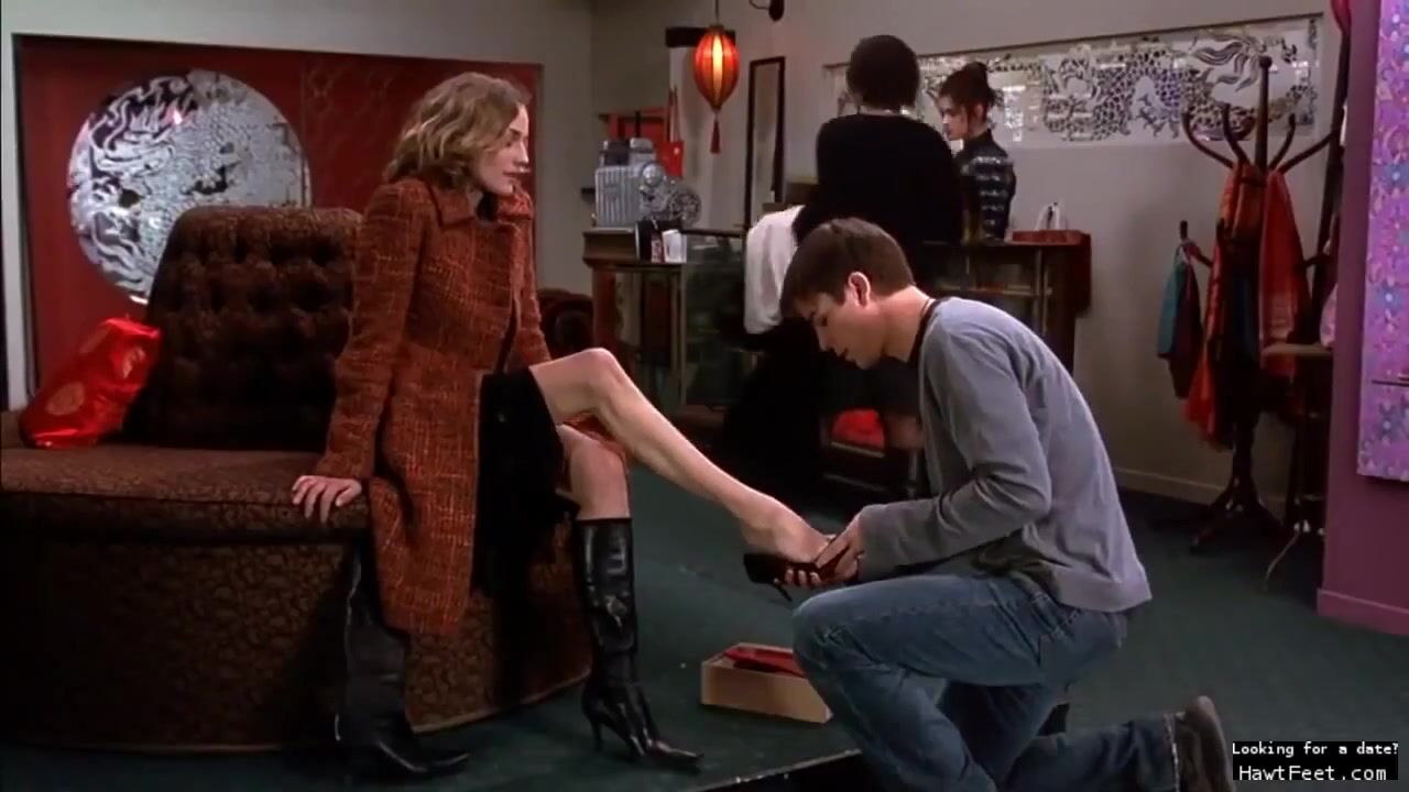 Skillfully young man helps Diane Kruger try new shoes in the store. Diane's feet are simply amazing and easily tempt the shop assistant when he puts her feet on his knee and allows the man to touch it.