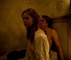 Emma Stone takes the erect drill in her hand in the sex scene from The Favourite. The young man hasn't even imagined it can be so good to feel the tender Emma's hand on his thumping tool in the bed.
