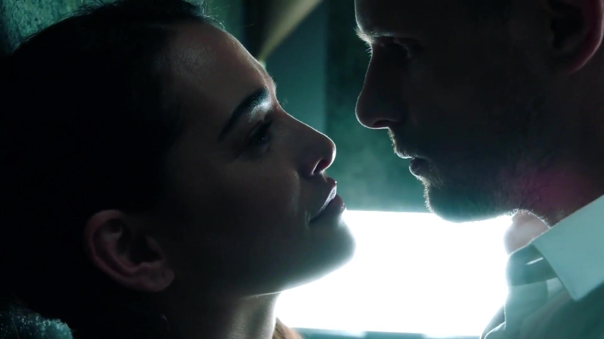 Sex scene from the horror TV series Into the Dark where Natalie Martinez fools around with the man in the elevator. The charmer hooks up without knowing that somebody is spying on her being humped.