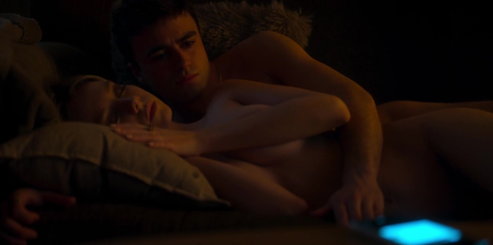 Here we have a nude Ester Exposito scene that shows the good-looking blonde with a ponytail mounting a guy's dick. After we see her ride him in cowgirl, she kind of changes gears. We smash cut to her getting banged sideways. Kind of. They are both half-asleep at this point.
