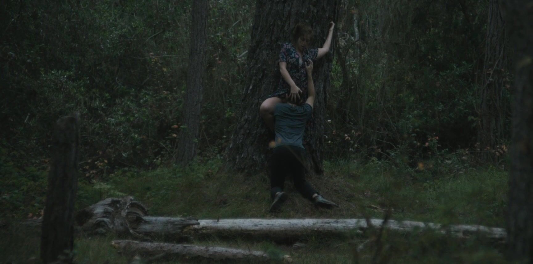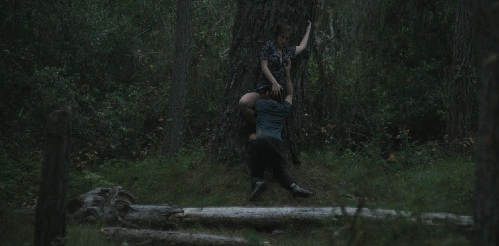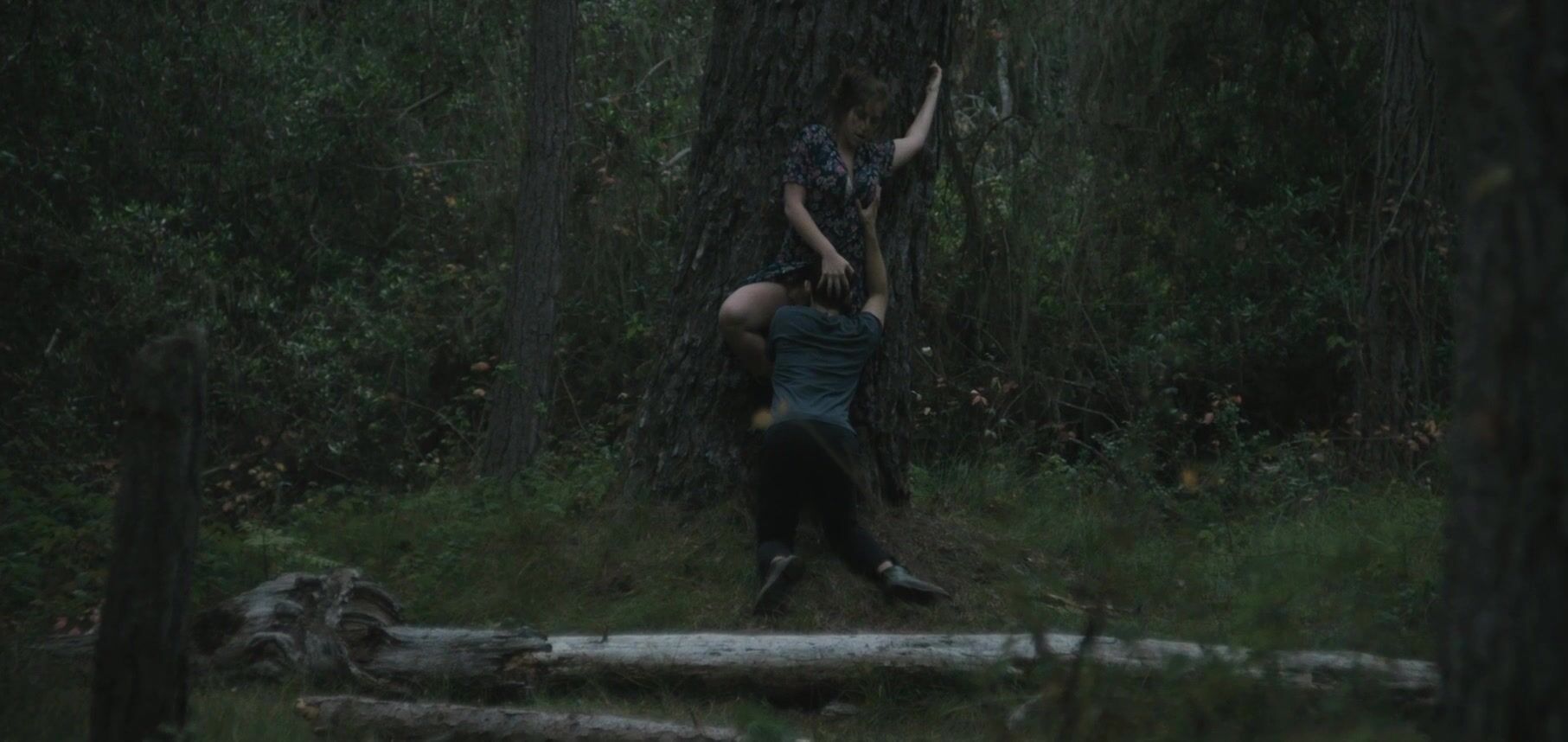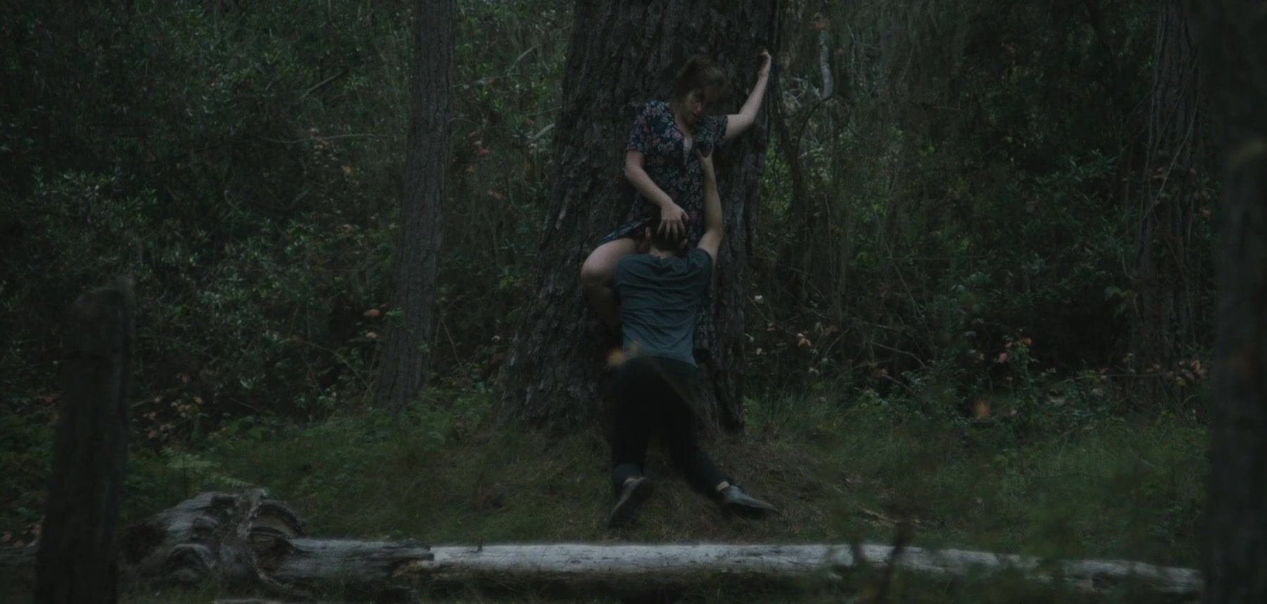 The video begins with Nika Burnett turning her head in a rather dramatic fashion. She's about to lock her eyes with some creepy-looking cuck that wants to see her getting licked by a random guy. Her back is pressed against a very sturdy tree and she's getting licked in a thorough fashion.