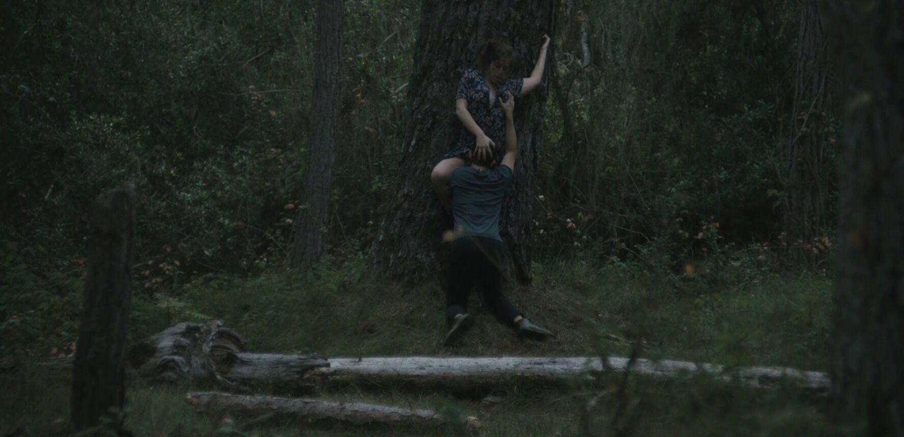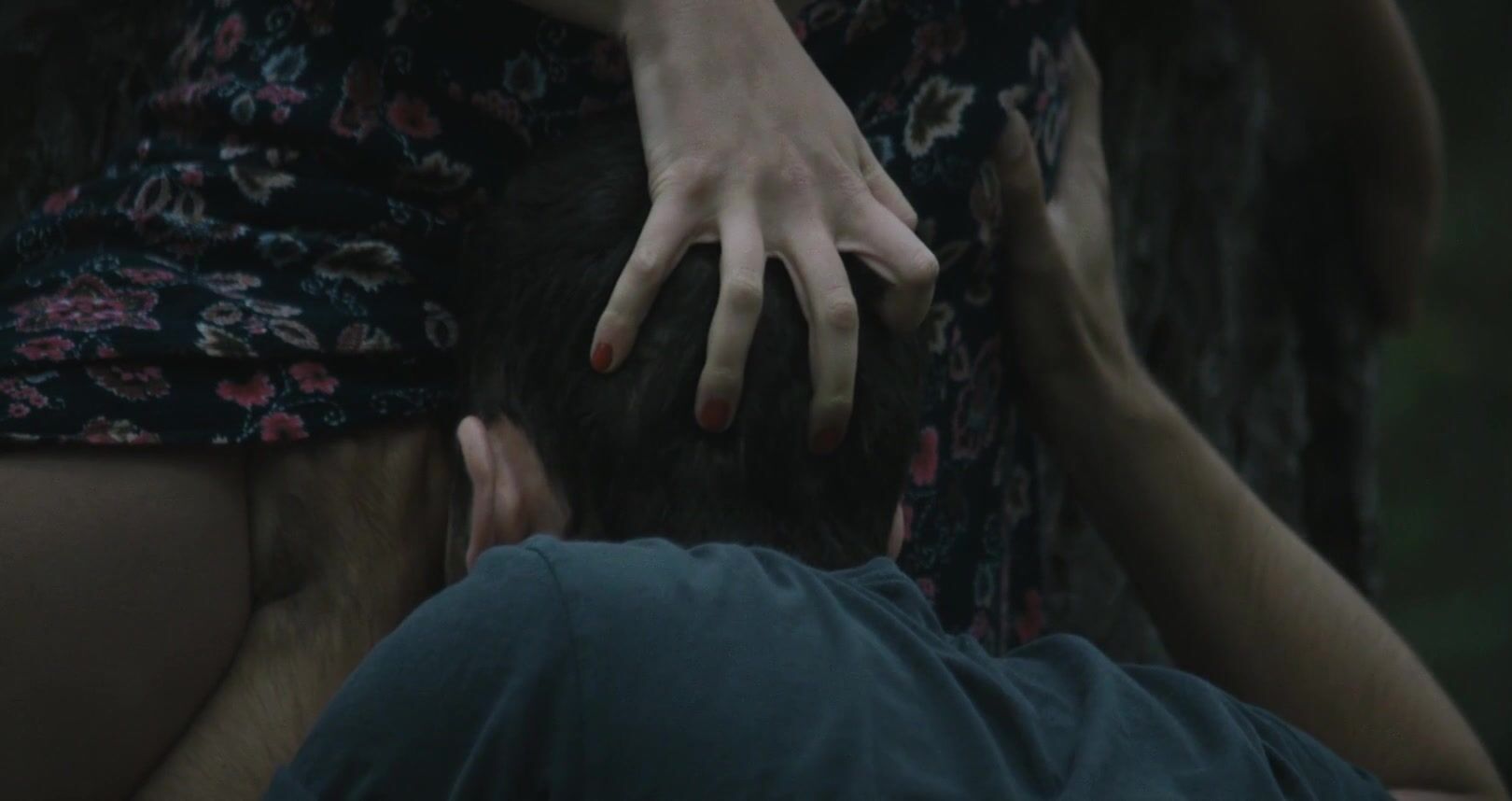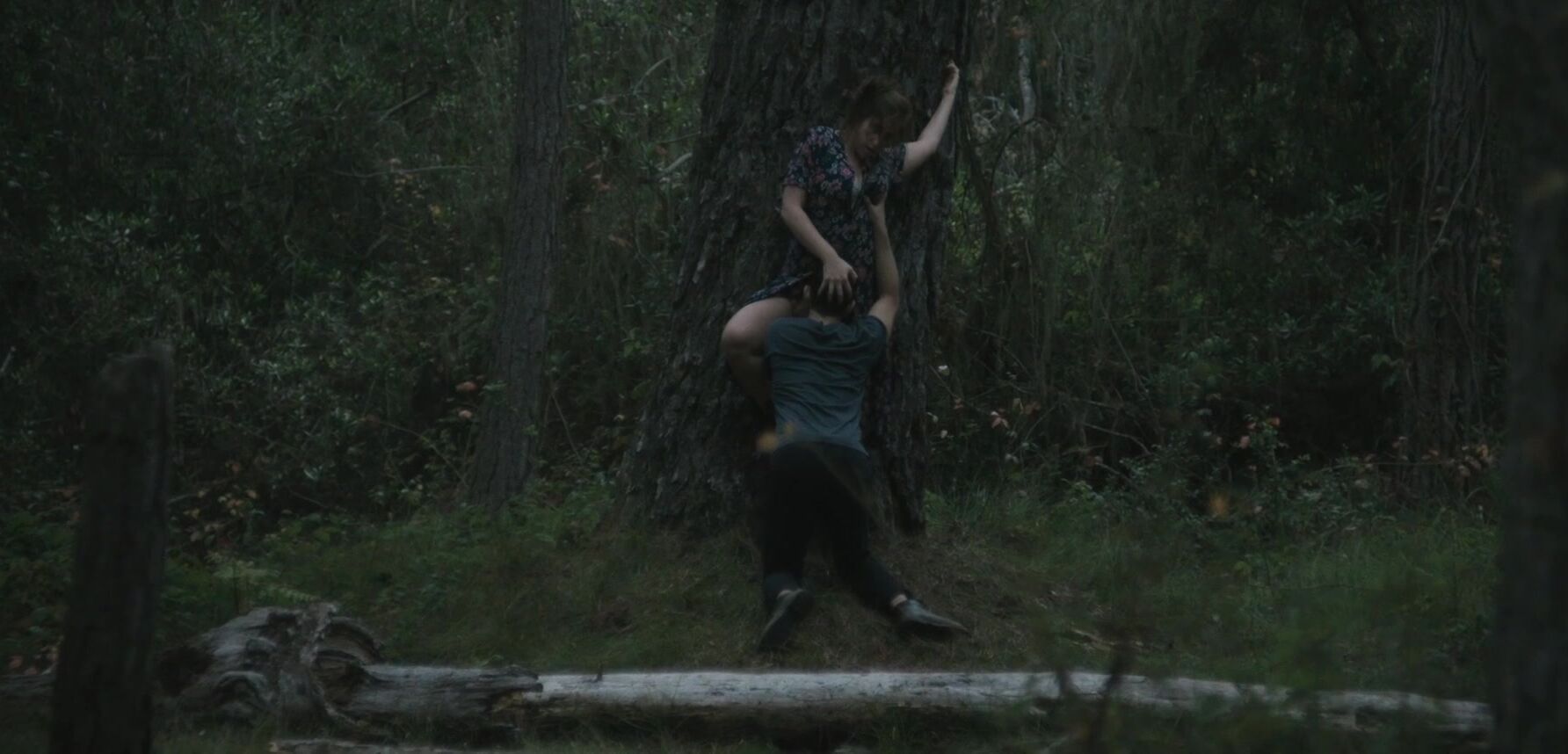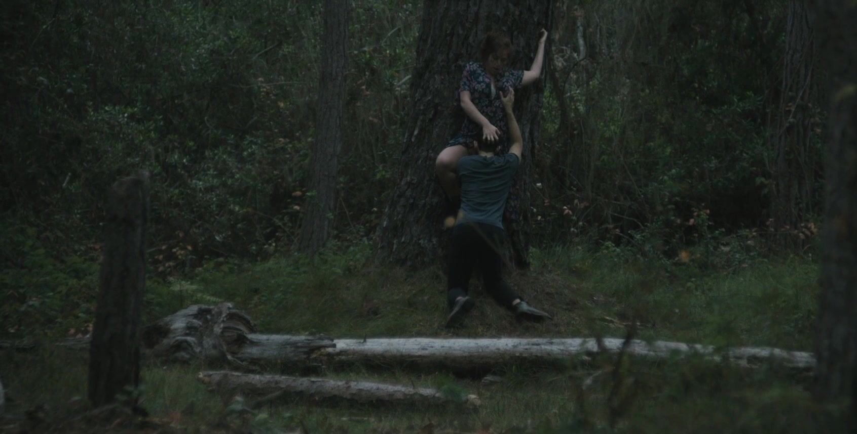 The video begins with Nika Burnett turning her head in a rather dramatic fashion. She's about to lock her eyes with some creepy-looking cuck that wants to see her getting licked by a random guy. Her back is pressed against a very sturdy tree and she's getting licked in a thorough fashion.