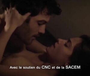 The screwing sesh is interrupted by a phone call! They don't get to orgasm in this impassioned celebrity sex scene. We do get to see Eugenie Derouand's naked boobs, though.