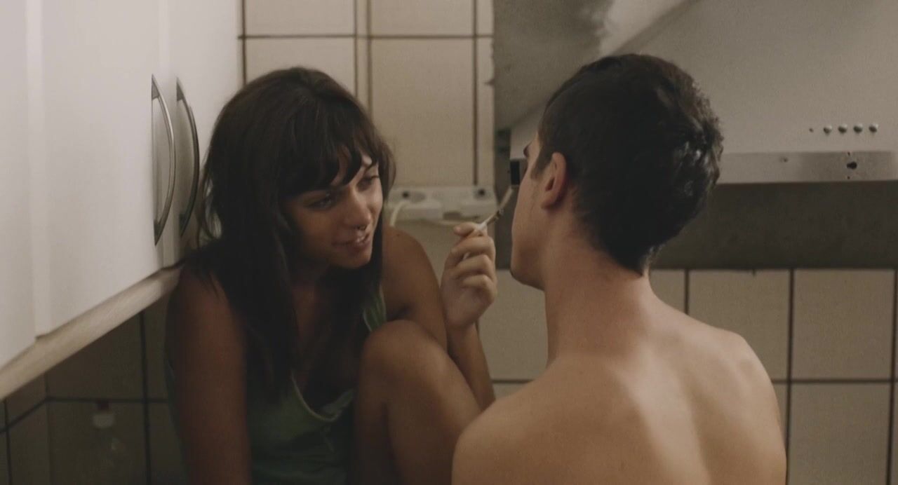 The hottest moment is when the fully naked Caro shows us her medium-sized boobies while enjoying a smoke with her boyfriend. An ashtray is strategically placed to cover her pussy.