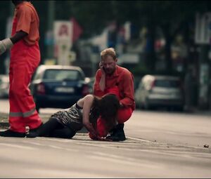 The heroine of the film is washed in the shower and then fucked with a guy