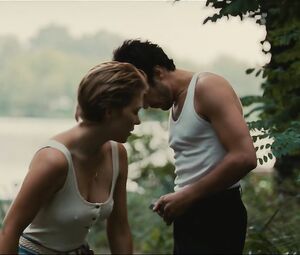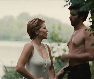 Lea Seydoux full frontal nude scene. First we see her protruding nipples through the shirt. Then she undresses in the street in front of a man. Lea Seydoux and man They fuck in nature.