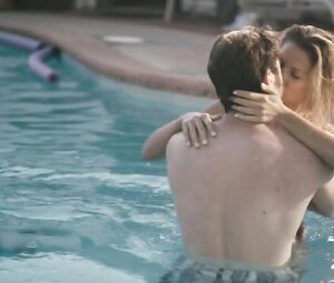 Sarah Baldwin nude scene from the movie Slumlord (release 2015). He takes off his trunks from the two in the water. Fuck naked in the pool.