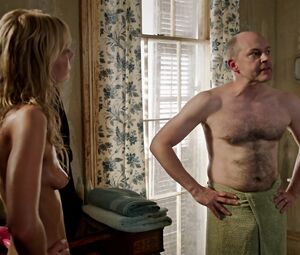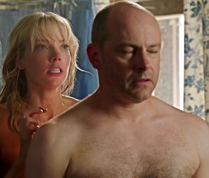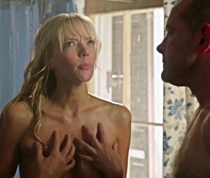 Riki Lindhome shows explicit nudity the body's head and tits. He stands naked in the shower. Riki shows the man and us his tits and shaved pussy. This slender blonde squeaks in the first scene, but then she stands, and the man does her massage. A full frontal Hollywood hot scene.