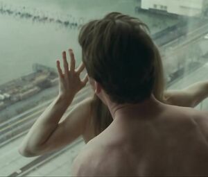Erotic thriller "Shame". Naked actress Amy Hargreaves in sex scene a skyscraper near the window. Her boyfriend fucks.