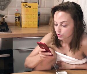 Russian brunette Anastasia Pronina talks to her boyfriend about relationships and life. First you will see Anastasia resting topless in the bathroom, and then watch how she will wrap herself in a towel and go with a guy to the kitchen to talk some more. This half-naked beauty loves to show her small tits, so a hot video with her participation will impress you!