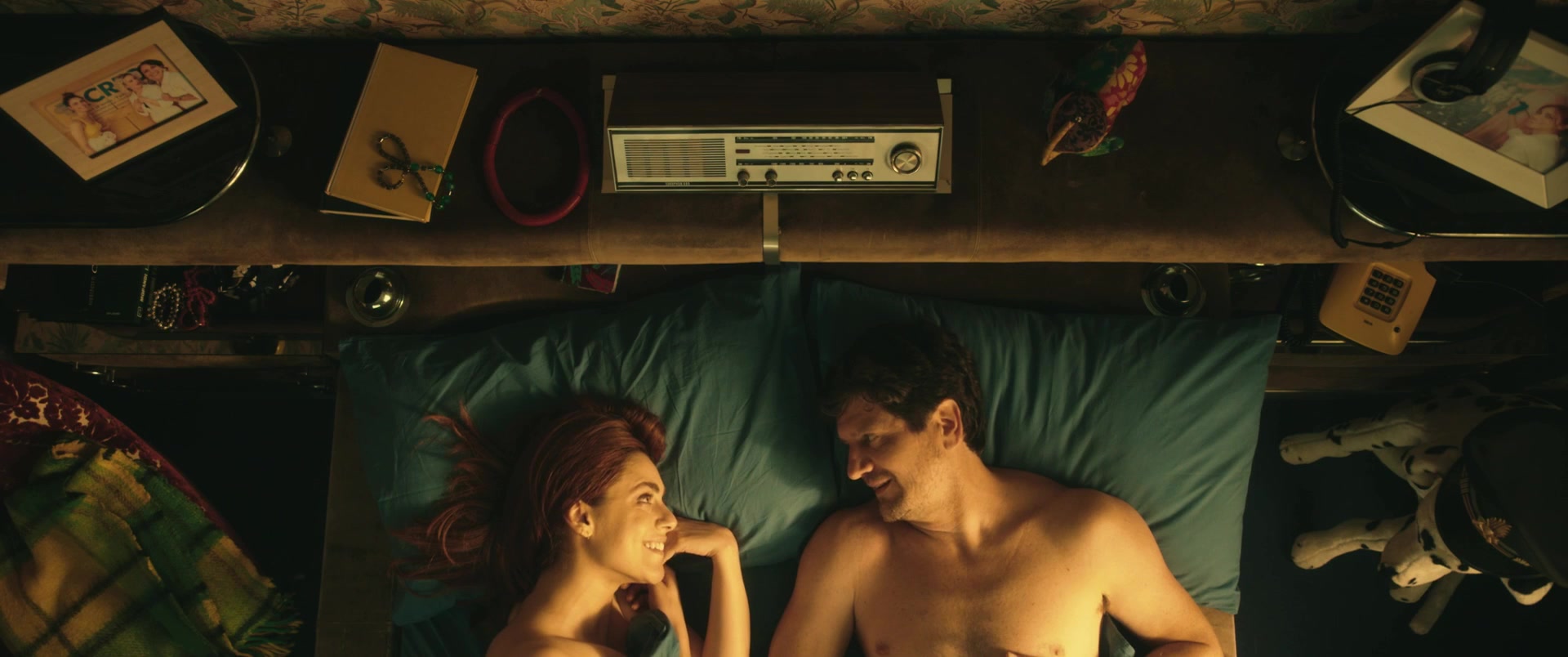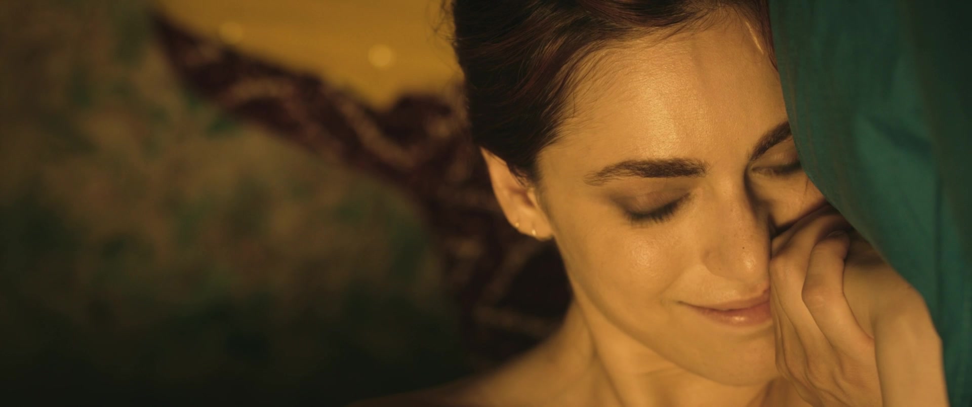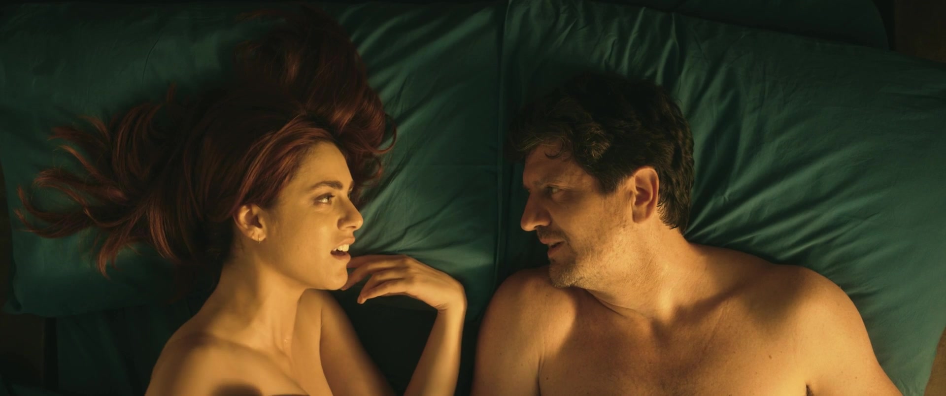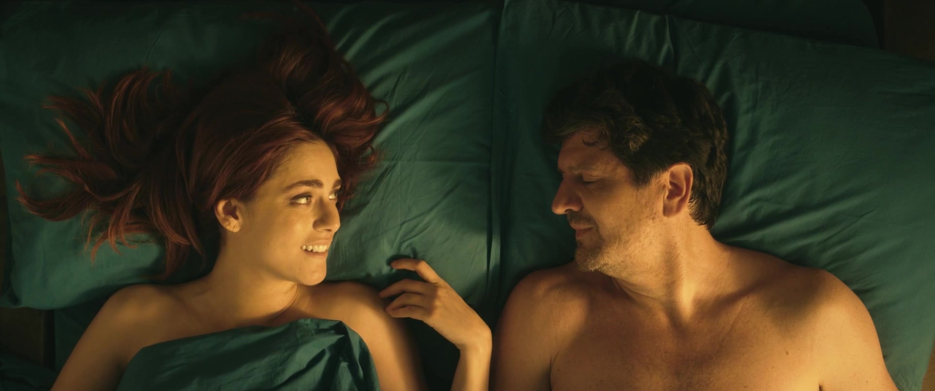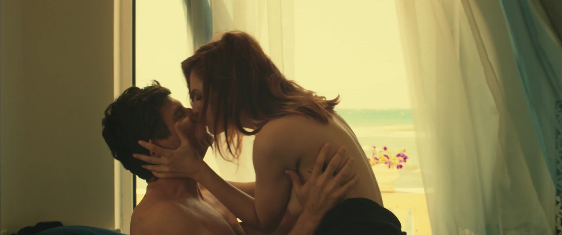 Depraved hottie Miriam Leone lies in bed with her man and talks to him. It's obvious that this girl is in love with him. And then she begins to kiss the man and feels a powerful excitement. Almost a few minutes later Miriam saddles a big cock of her lover and starts to ride it. This beauty prefers to make love sensually. You can look at her half-naked body in a hot nude scene.