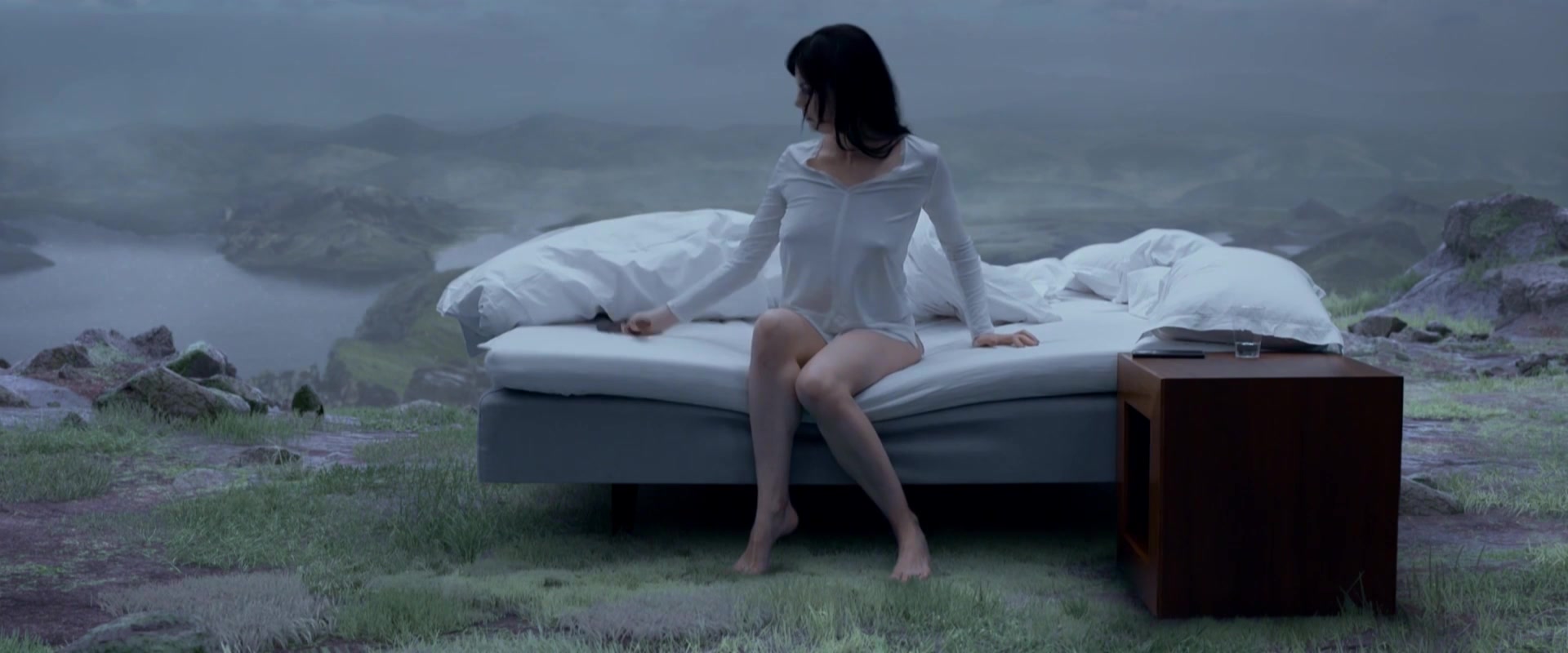 Attractive brunette Maria Ruiz wakes up in bed on top of the mountain. She is wearing white clothes, through which her hard nipples are visible. Then Maria goes to the mirror and sees her reflection there. She gets angry and tries to break the mirror. In this unusual scene you will see all the sexuality of Maria. This girl is just created to act in hot episodes!
