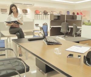 Funny nude advertising furniture salon. Naked girl